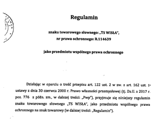 Do obu oznaczeń spółka TOWARZYSTWO SPORTOWE WISŁA KRAKÓW SPÓŁKA AKCYJNA jak i stowarzyszenie TOWARZYSTWO SPORTOWE WISŁA KRAKÓW uzgodniły regulaminu korzystania ze wspólnych praw: